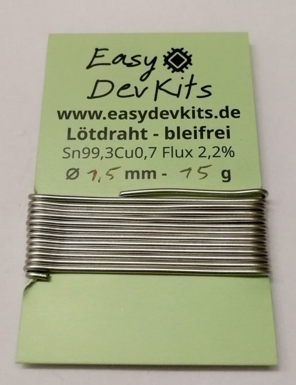 Lötdraht Lötzinn mit Flussmittel bleifrei Legierung 99,3% Zinn 0,7% Kupfer Flussmittel 2,2%.